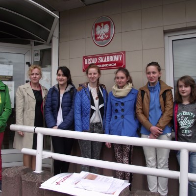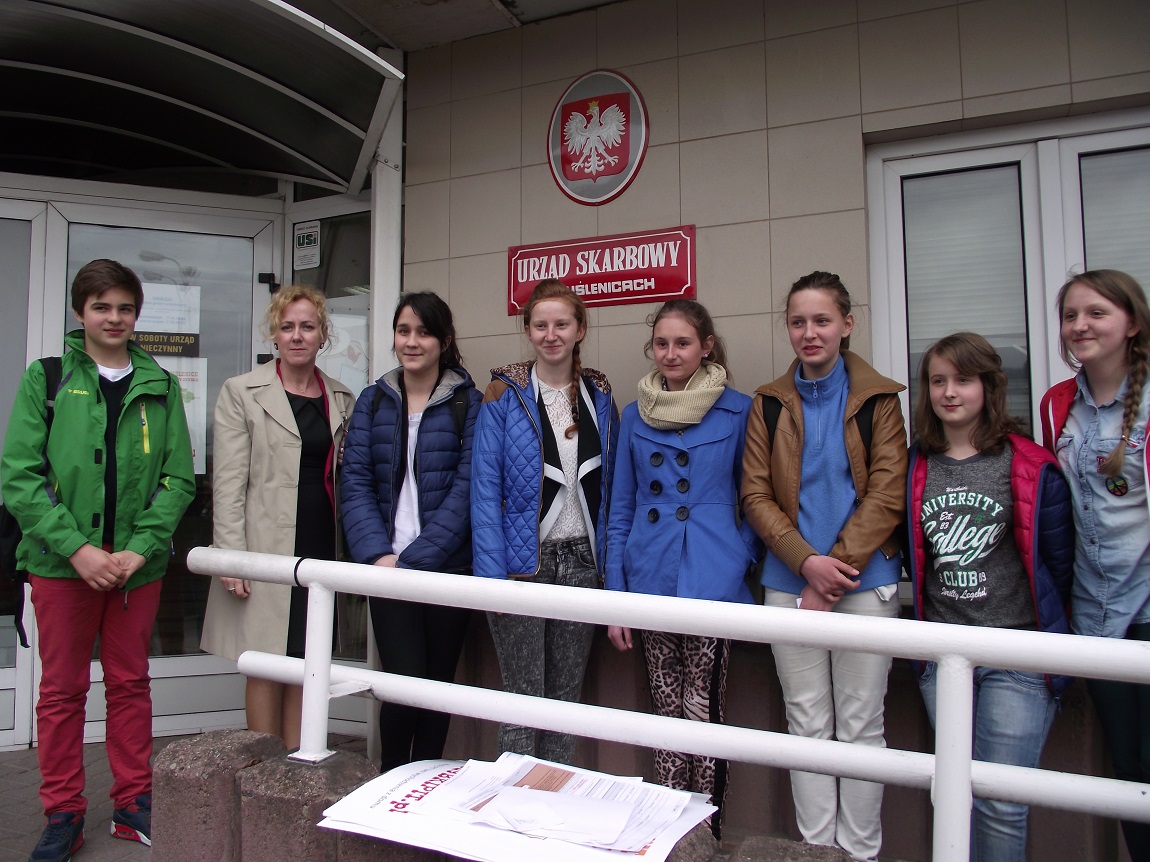 W dniu 17.04.15r. uczniowie w ramach zajęć Koła Przedsiębiorczości odwiedzili Urząd Skarbowy w Myślenicach. Pracownicy urzędu przedstawili formy opodatkowania działalności gospodarczej, pokazali druki zeznań podatkowych i sposób ich wypełniania, poinformowali czym jest podpis zaufany i jak wypełnić dokument urzędowy nie wychodząc z domu.