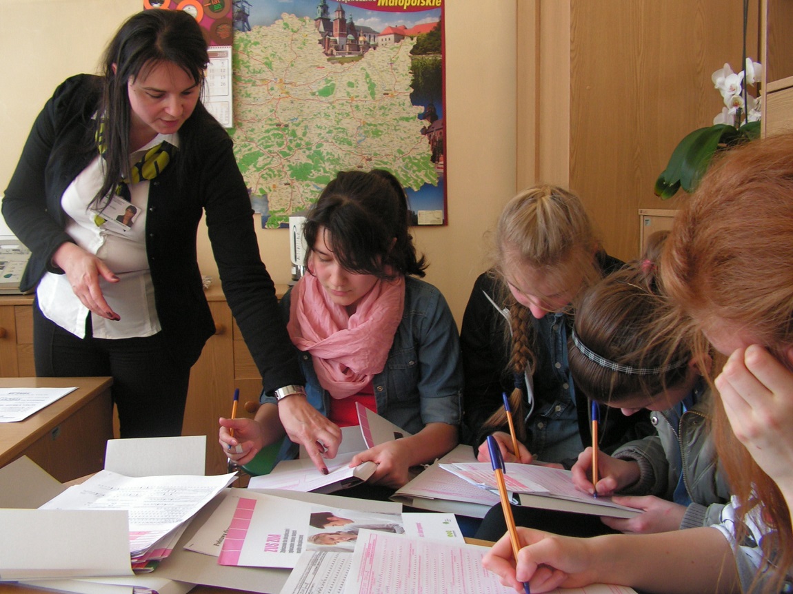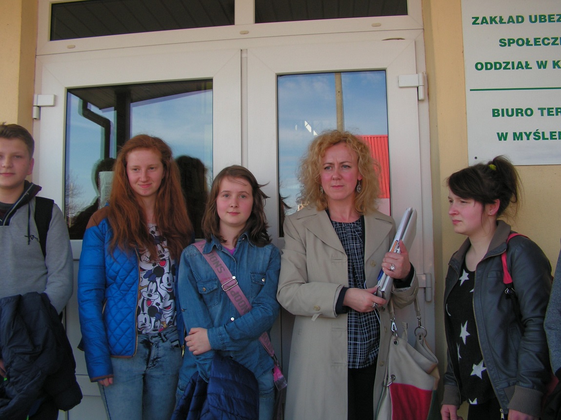 W dniu 10.04.15r. uczniowie odwiedzili Zakład Ubezpieczeń Społecznych w Myślenicach. Celem wizyty było pozyskanie informacji na temat zakładania działalności gospodarczej oraz zgłaszania płatnika składek do ubezpieczeń społecznych. Szczegółowych informacji udzielała Pani Janina Kania – pracownik ZUS. Uczniowie otrzymali szereg materiałów informacyjnych.