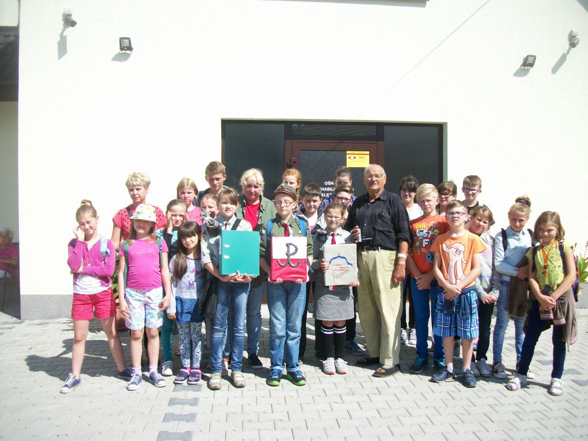 Wędrując po okolicy odwiedziliśmy miejscowy Ośrodek Pielęgnacyjno – Rehabilitacyjny, gdzie dzięki uprzejmości P.M. i Z.Urbaniak poznaliśmy bardzo ciekawego człowieka – P.Mieczysława Bułata – emerytowanego działacza Lotnictwa Sportowego. P. Mieczysław opowiedział nam ze wzruszeniem o czasach II wojny światowej, jego pasji latania na szybowcach oraz filmowania. Zaprosił nas na projekcję filmu „Partyzanci spod Łysiny” – krwawej  historii naszego terenu podczas zawieruchy wojennej oraz filmu „Ucieczka z Auschwitz” – pięknej opowieści o bohaterach, którzy niestety odchodzą w zapomnienie w ludzkiej pamięci…