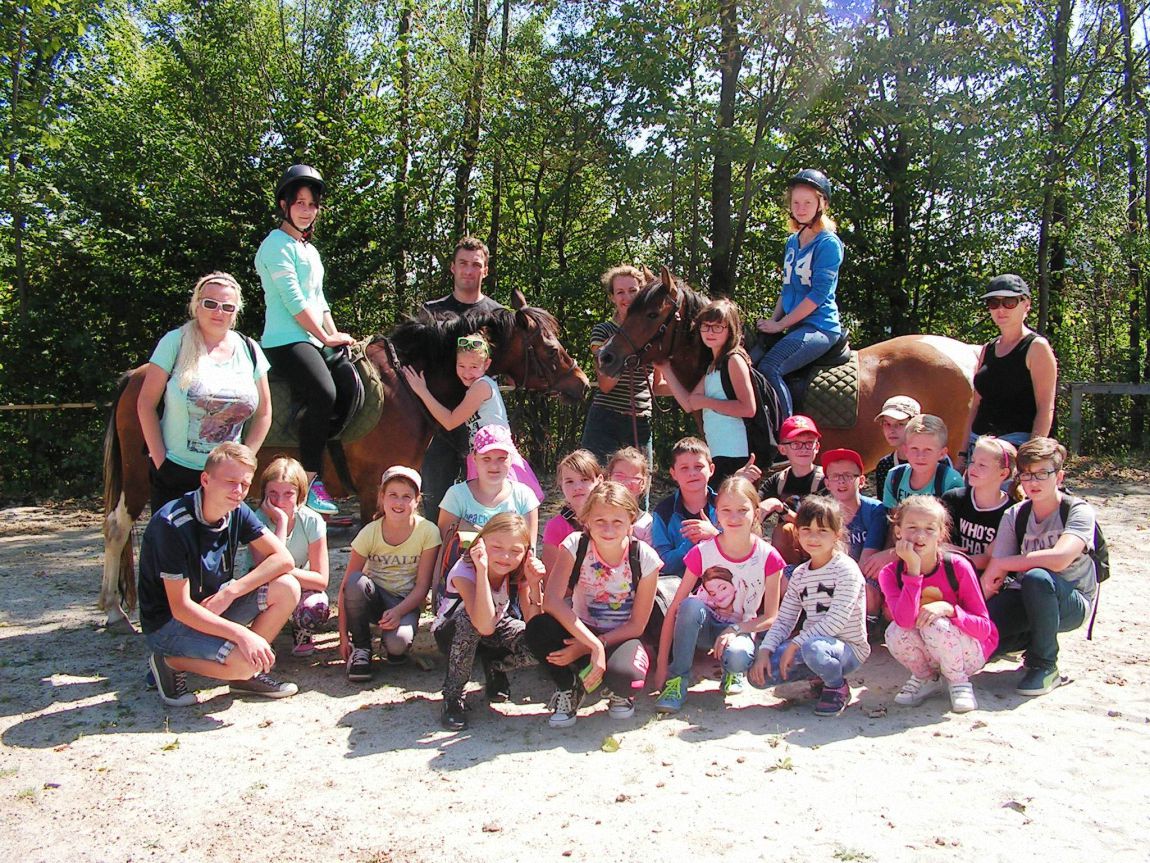 Kolejnym punktem programu była piesza wycieczka do gospodarstwa agroturystycznego w Kobielniku. Dzięki wspaniałej pogodzie mogliśmy podziwiać piękne widoki okolicy. Dzieciom najbardziej podobała się możliwość jazdy konnej pod opieką doświadczonych instruktorów. Dzięki uprzejmości gospodarzy zapaliliśmy też ognisko i upiekliśmy kiełbaski.