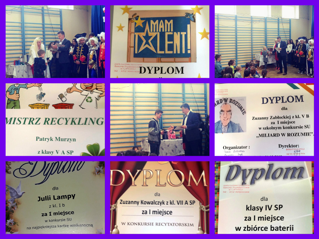 Po uroczystej akademii z okazji Święta Narodowego 3 Maja mgr inż. A. Skiba – Dyrektor szkoły wręczył 64 dyplomy, nagrody książkowe oraz rzeczowe dla uczniów i klas nagrodzonych w konkursach SU organizowanych z okazji pierwszego dnia wiosny, Międzynarodowego Dnia Poezji i na najładniejszą kartkę wielkanocną. Pogratulował zdobywcom miejsc oraz wszystkim aktywnym uczniom.