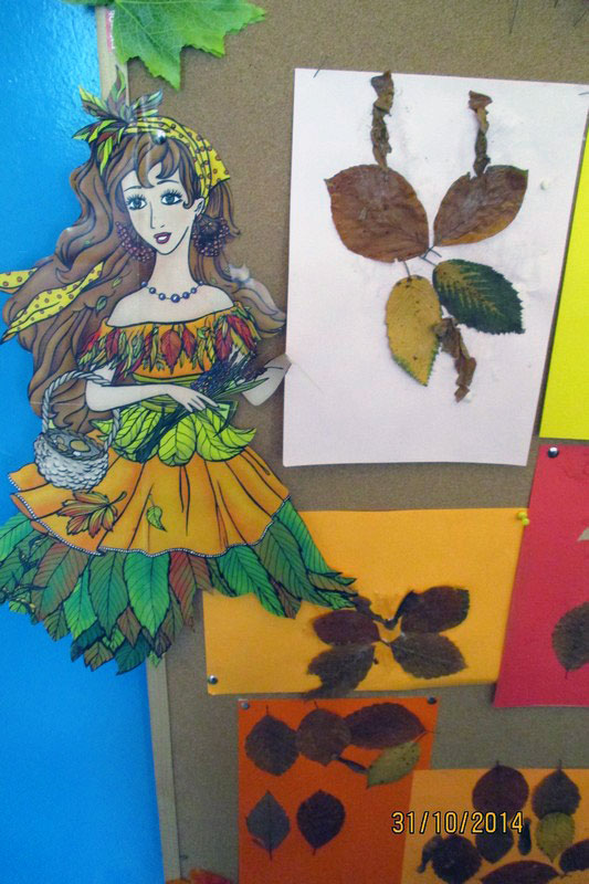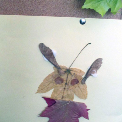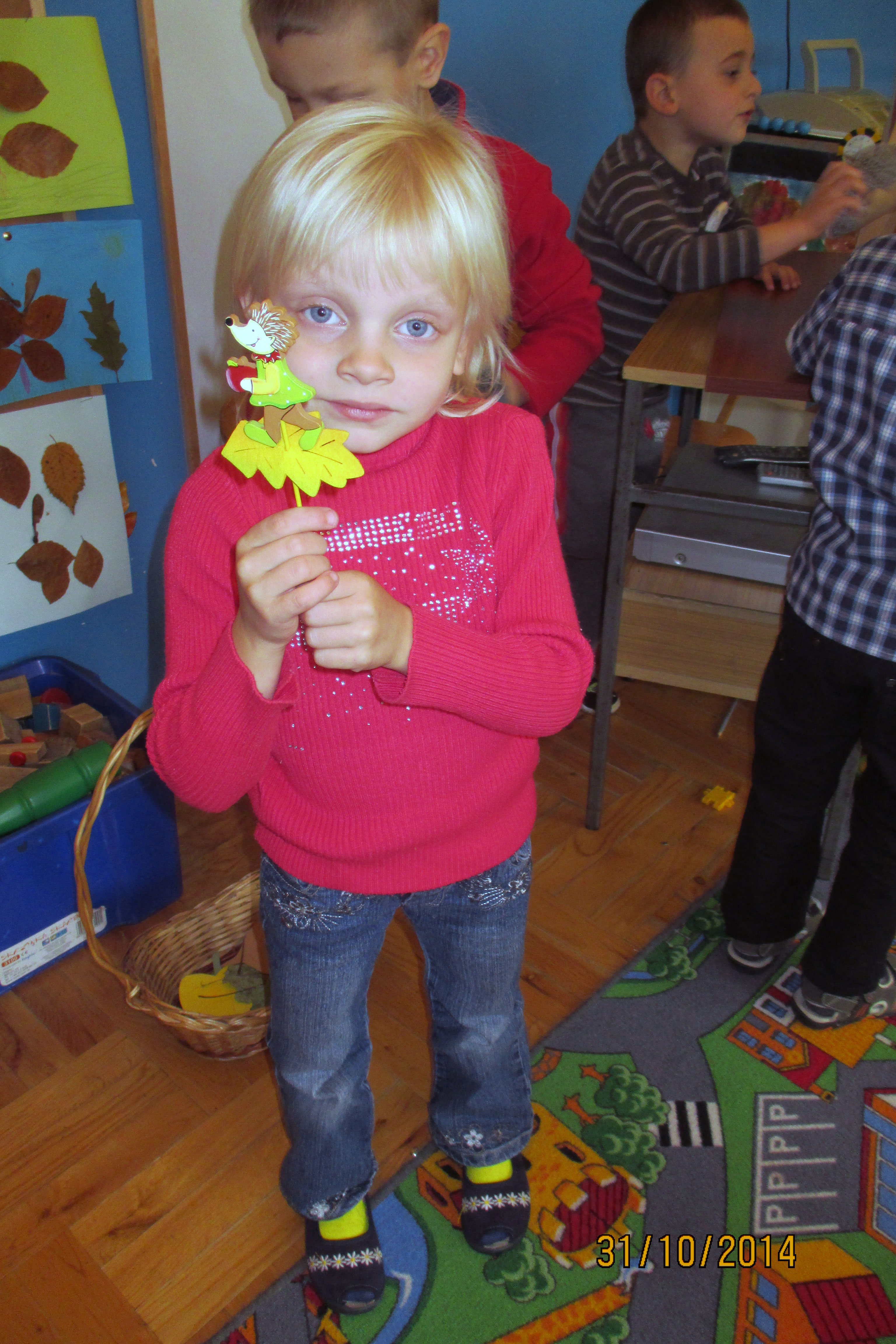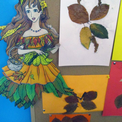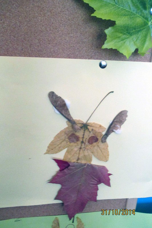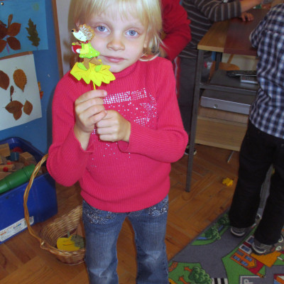Opowiedział słuchaczom, jak to się napisały krasnalkowe opowieści. Dzieci stworzyły z zasuszonych jesiennych liści bajkowe postacie, które potem zostały umieszczone na wystawce.
