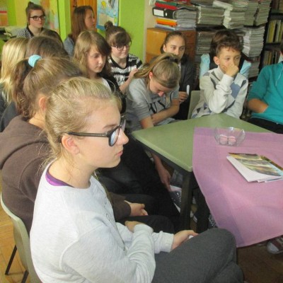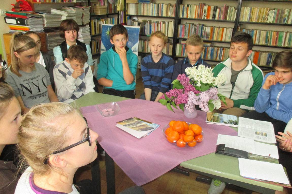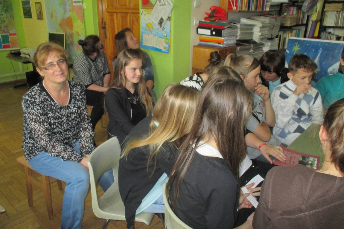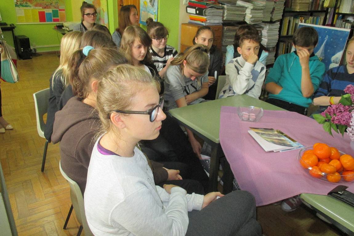Dnia 14. 05. 2015 r. w Szkolnej Bibliotece gościła autorka tomików wierszy p. Łucja Bajer. Towarzyszył Jej mąż – Jan Bajer oraz p. Antonina Obuchowicz – Dyrektorka Gminnej Biblioteki Publicznej im. Janiny Czaja w Wiśniowej, a także p. Stanisława Bydłoń – bibliotekarka z Gromadzkiej Biblioteki Publicznej w Lipniku, która zawsze bardzo chętnie odwiedza nas i wspiera nasze biblioteczne działania. Słuchaczami p. Łucji, która przeczytała kilkanaście wierszy ze swoich tomików byli uczniowie klasy I gimnazjum wraz z wychowawczynią p. Urszulą Kucałą. Poezji przysłuchiwały się też nauczycielki: p. Barbara Kirzeniewska oraz p. Małgorzata Janik.