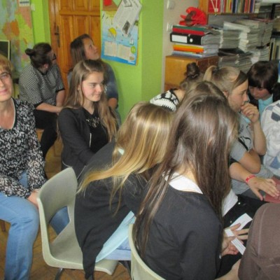 Młodzież zasypała p. Łucję wieloma ciekawymi pytaniami, najbardziej aktywny uczeń – Mariusz Dudzik – otrzymał od autorki najnowszy tomik wierszy pt. „ Ku światłu”, a p. Jan podarował młodzieży niezwykle cenne maksymy na życie. Autorka przekazała Szkolnej Bibliotece kilkanaście swoich tomików z dedykacją. Na zakończenie spotkania uczniowie pięknie podziękowali gościom, wręczyli upominki oraz laurki z życzeniami dalszych sukcesów w pracy zawodowej i autorskiej.