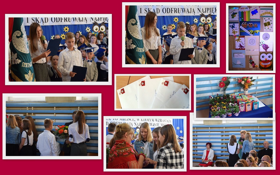 SU złożył Dyrekcji, nauczycielom, pracownikom obsługi okolicznościowe życzenia oraz wręczył w podzięce kwiaty i symboliczne upominki. Przekazał też życzenia na własnoręcznie wykonanych kartkach okolicznościowych emerytowanym nauczycielom i pracownikom obsługi szkoły.