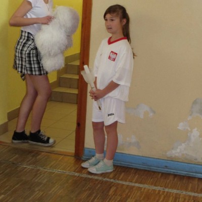 Wręczono również nagrody dla uczestników konkursu plastycznego o tematyce sportowej / I miejsce zajęli: Kacper Jamróz, Anna Tokarz i Barbara Habieda /.