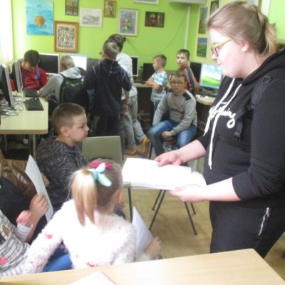 W kolejne czwartki zapraszam uczniów do spotkań z „teatrem obrazkowym” – Kamishibai. Tym razem mogli oni wysłuchać ilustrowanej „Legendy o Skarbniku”, która w 17 pięknych, kolorowych kartach została przeczytana w jeszcze karnawałowym klimacie. Uczniowie, którzy aktywnie biorą udział w spotkaniach czytelniczych w Szkolnej Bibliotece otrzymają „Certyfikat Aktywnego Czytelnika”.