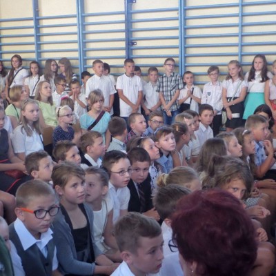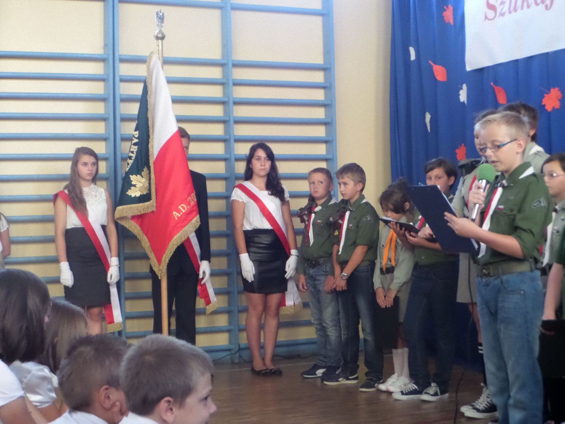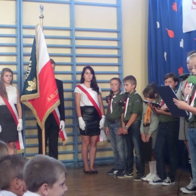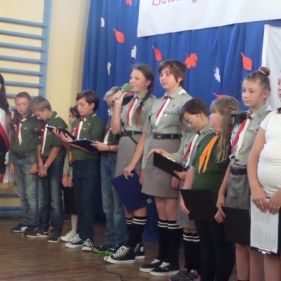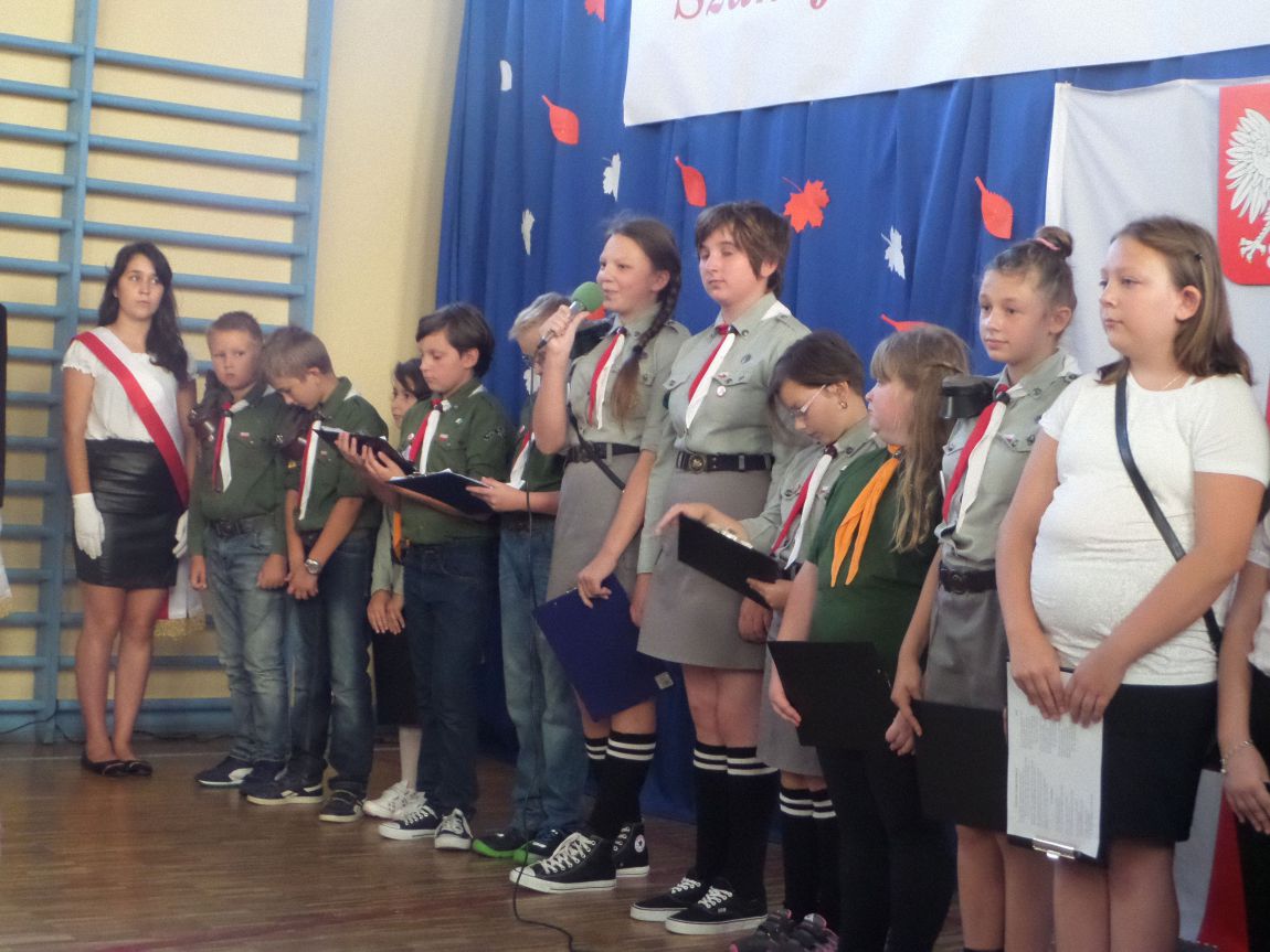 Około godziny 9:15 uczniowie i nauczyciele spotkali się w budynku szkoły, gdzie odbyła się uroczysta akademia z okazji rocznicy wybuchu II wojny światowej, przygotowana przez zuchów i harcerzy.