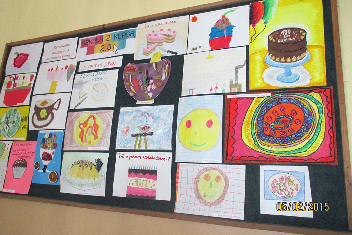 Inspiracją do konkursu plastycznego, jaki odbył się w Szkolnej Bibliotece była książka Małgorzaty Strzałkowskiej pt. „Rymowane przepisy na kulinarne popisy”, zaopatrzona w „kolaże autorki, wyklejane we wtorki i wedle ochoty również w soboty”.