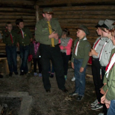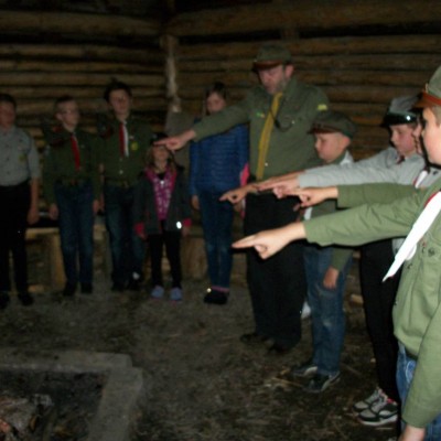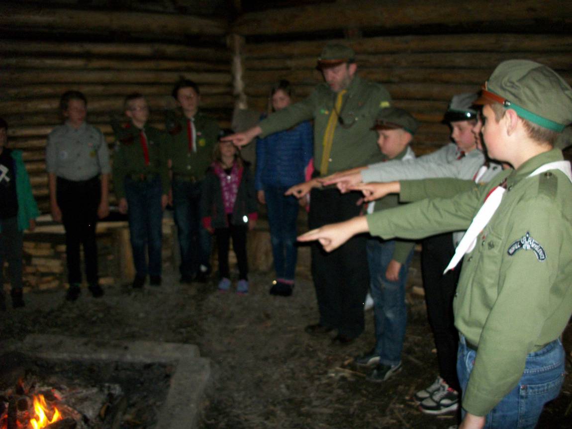 Następnie po krótkim odpoczynku udaliśmy się na harcerskie ognisko. Druhny z Bukowiny Tatrzańskiej rozśpiewały nas wszystkich. Wszyscy integrowaliśmy się we wspólnych pląsach i zabawach przy ognisku, tylko gitara wilgotnym powietrzu odmówiła posłuszeństwa. Następnie przyszedł niezwykły moment w życiu zuchenki Martynki Krzan – złożyła Obietnicę Zuchową w obecności samego Komendanta harcmistrza Mariana Antonika. Gratulacjom nie było końca. W dalszej kolejności dwie druhenki Madzia Murzyn i Patrycja Bajer oraz druhowie Hubert Bardel, Robert Jasek i Olaf Bogacz uroczyście wypowiedzieli słowa Przyrzeczenia Harcerskiego: „Mam szczerą wolę całym życiem pełnić służbę Bogu i Polsce, nieść chętną pomoc bliźnim i być posłusznym Prawu Harcerskiemu”.