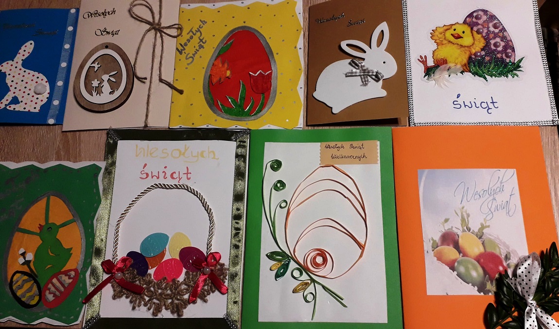 SU wykonał kartki wielkanocne oraz przekazał je emerytowanym nauczycielom i pracownikom obsługi szkoły.